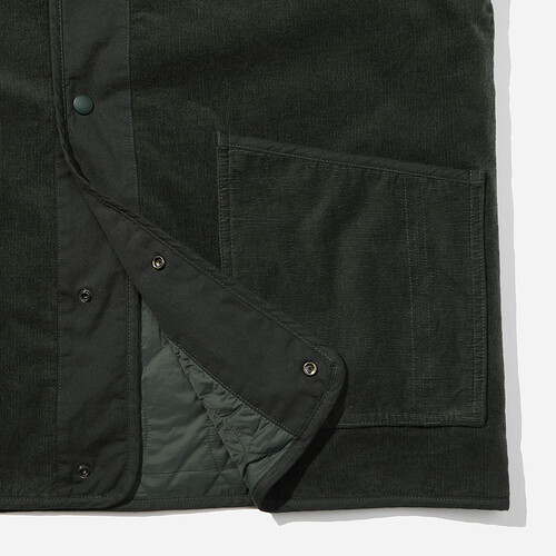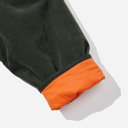 다크그린 : 겉감 면98%, 폴리우레탄2%, 배색 면100%, 안감 나일론100%, 충전재 폴리에스터100% - 세탁방법 및 취급시 주의사항 그늘건조, 드라이크리닝, 물세탁금지