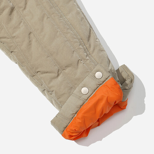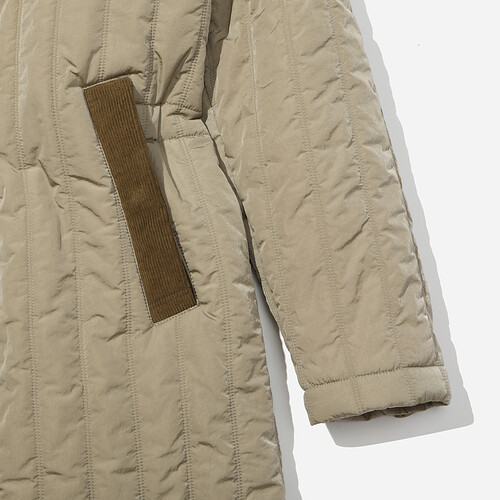 다크베이지 : 겉감 나일론100%, 배색 면100%, 안감 나일론100%, 충전재 폴리에스터100% - 세탁방법 및 취급시 주의사항 그늘건조, 드라이크리닝, 물세탁금지