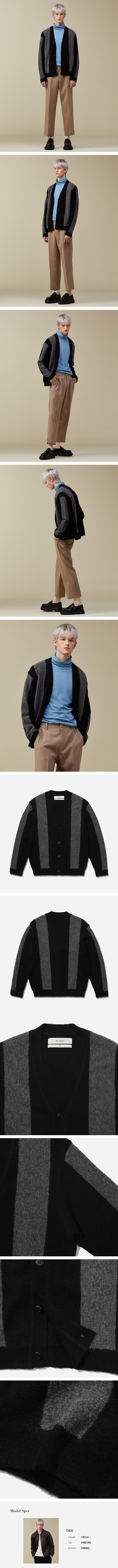 - 가로 짜임 포인트와 앞판 및 소매의 컬러 블록