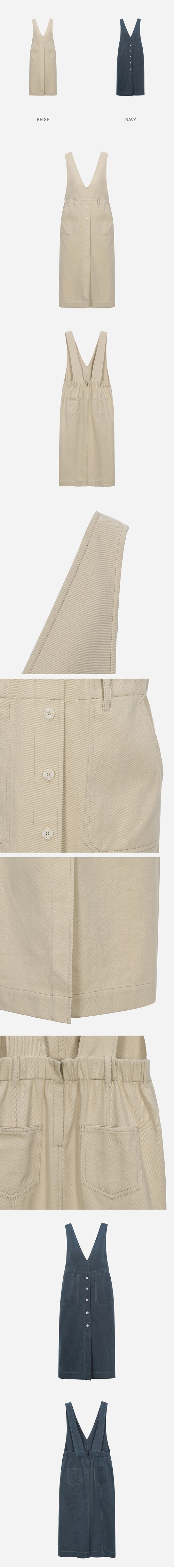 H라인으로 떨어지는 스타일로 슬림해 보이는 원피스.스커트 가운데 장식단추가 포인트이며 여러 상의 아이템과 함께 매치하여 연출하기 좋은 아이템.