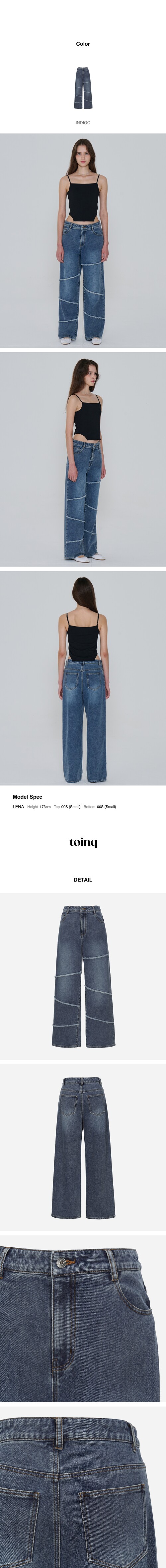 언발란스 절개 디테일로 레이어링 효과를 주는 와이드 핏 데님 아이템.