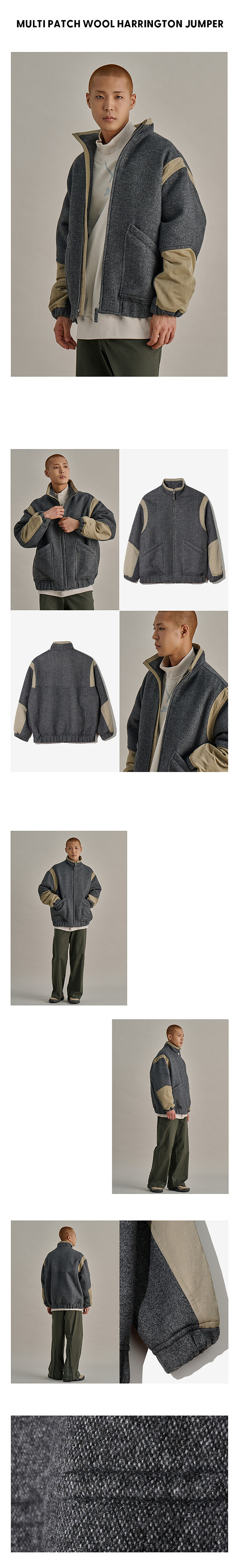MULTI PATCH WOOL HARRINGTON JUMPER GREY