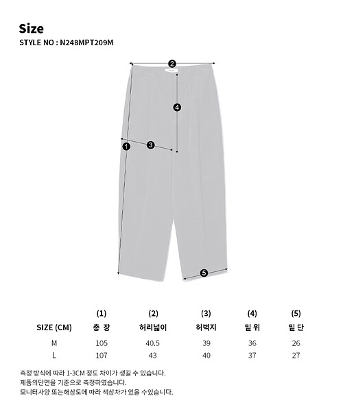 | 사이즈 | 허리둘레 | 엉덩이둘레 | 허벅지둘레 | 밑위길이 | 밑단둘레 | 총길이 |
