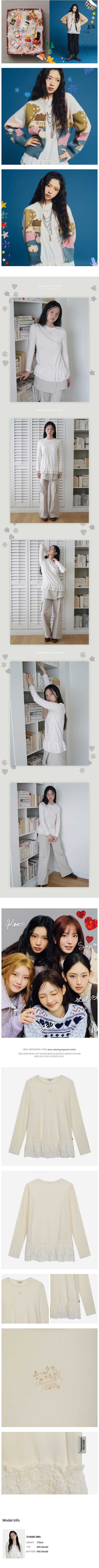 다양한 상의와 레이어링 코디가 가능하도록 밑단에 프릴 포인트를 준 러블리한 무드의 아이템.플라워 모티브 프린트로 포인트를 준 티셔츠.