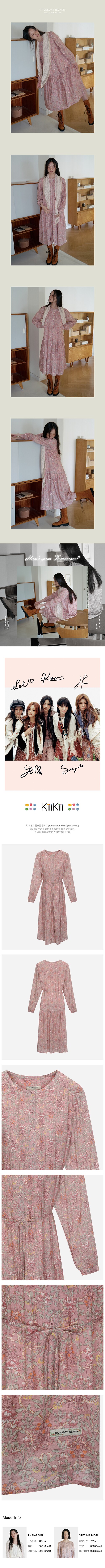 가슴부분에 핀턱으로 포인트를 준 유니크한 플라워 패턴 원피스.여유로운 핏으로 편안하게 착용 가능한 아이템.