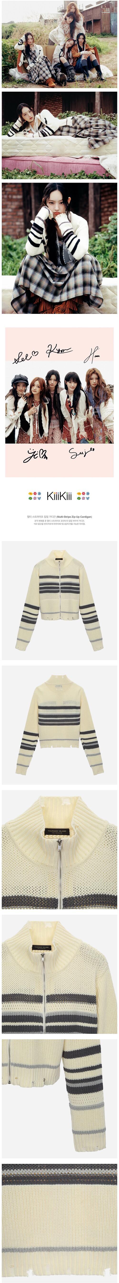 조직변화와 멀티 스트라이프 포인트인 집업 하이넥 가디건.넥과 밑단을 빈티지하게 마무리하여 멋스럽게 연출 가능한 아이템.