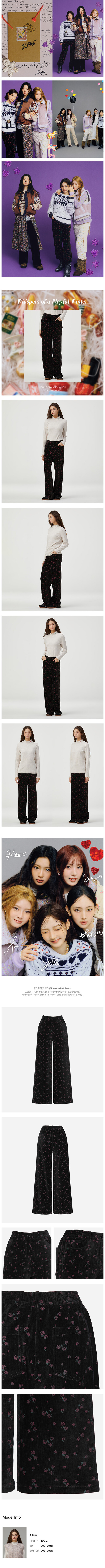 소프트한 터치감의 벨벳원단을 사용하여 루즈하게 떨어지는 스트레이트 팬츠.