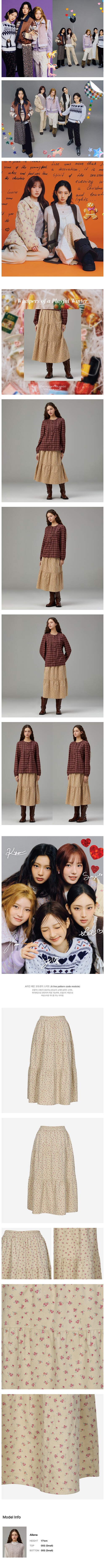 잔꽃무늬 패턴이 돋보이는 코듀로이 소재의 A라인 스커트.