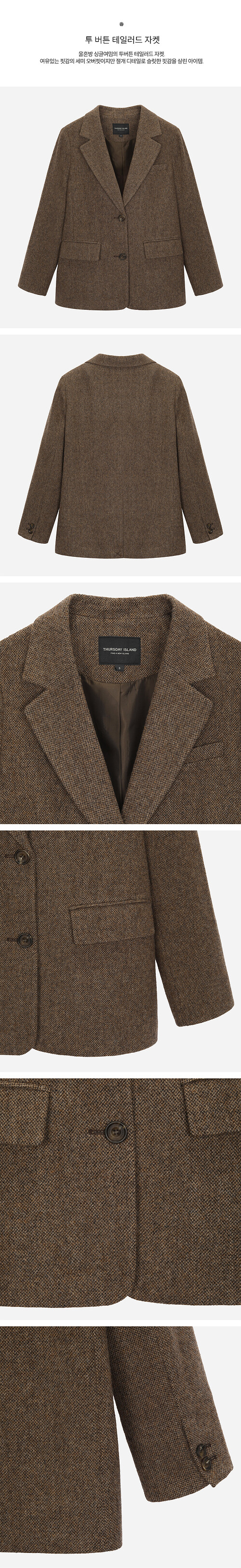 울혼방 싱글여밈의 투버튼 테일러드 자켓.