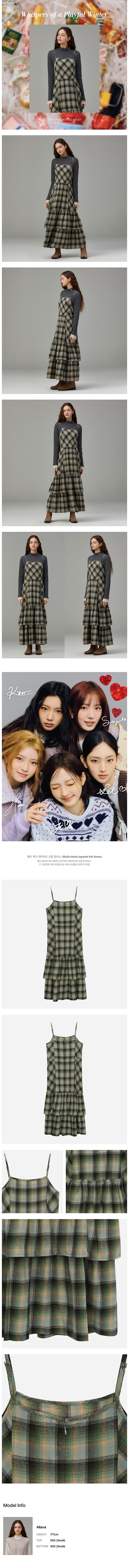 멀티 컬러의 체크 패턴이 감각적인 레이어드용 프릴 롱 원피스.