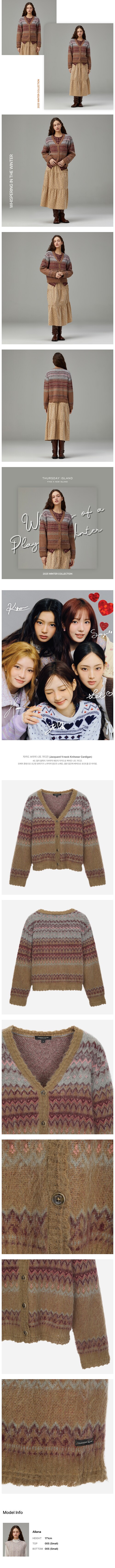 4도 컬러 블록의 기하학적 패턴의 자카드로 짜여진 니트 가디건.모헤어 혼방으로 포근한 분위기가