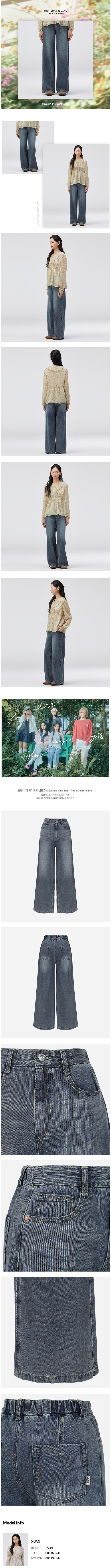 중청워싱의 세미와이드 데님 팬츠.데일리하게 착용이 가능한 활용도가 좋은 아이템.