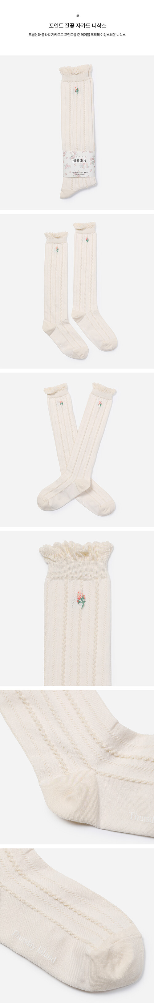프릴단과 플라워 자카드로 포인트를 준 케이블 조직의 여성스러운 니삭스.